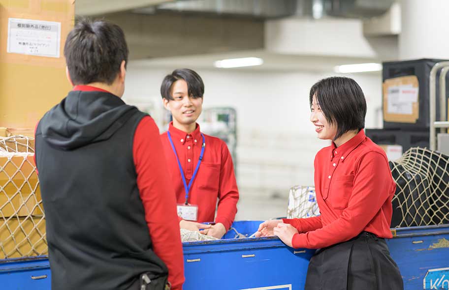現在は、あべのハルカスで売り場への搬送をしています。まだ配属されて2ヶ月ですが、売り場の店員様と顔見知りになり、ただ商品をお届けするというだけではなく、売り場のストックがいっぱいになっているようなら自ら「裏に置いておきましょうか?」などのコミュニケーションを取れるようになり人と人とのつながりを大事にしながら仕事をしています。人と接する仕事がしたいと考えていた私にはぴったりの仕事でやりがいを感じています。