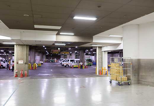 毎日大量に入荷する車両、荷物を管理しています。ビル全体の物流を管理する「総合物流センター」機能を確立しています。車両の入出庫を時間管理し、荷捌場や周辺道路の混雑を緩和いたします。独自システムでビルに合わせた荷捌場の管理方法をご提案いたします。